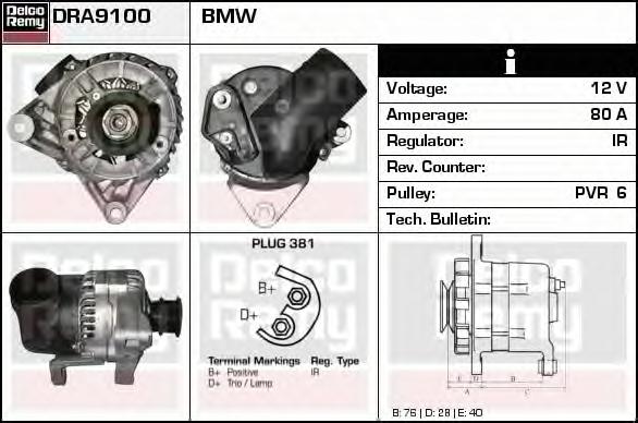 Generator / Alternator DELCO REMY DRA9100 |