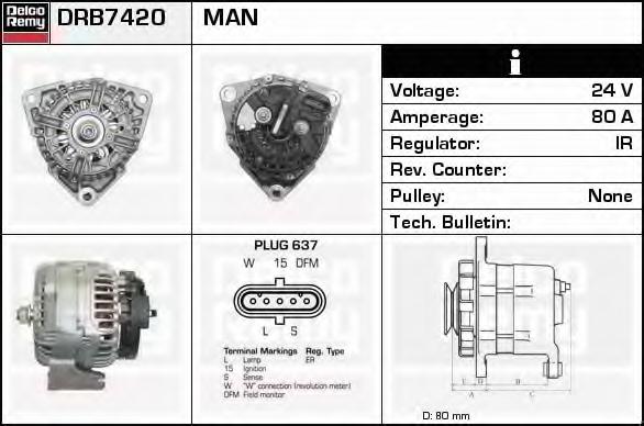 Generator / Alternator DELCO REMY DRB7420 |