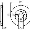 R: 283 mm; Grosime disc frana: 25 mm; Grosime minima [mm]: 23 mm; Tip disc frâna: ventilat interior ; Butuc roata ?: 72 mm; Num. gauri: 5 ;