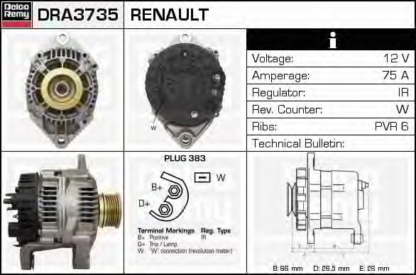 GENERATOR / ALTERNATOR DELCO REMY DRA3735 pentru RENAULT MASTER II caroserie (FD) 2.5 D |