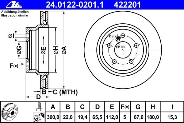 DISC FRANA ATE 24.0122-0201.1 pentru MERCEDES-BENZ E-CLASS T-Model (S212) E 350 CDI 4-matic (212.293) |