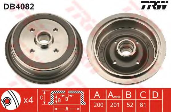 TAMBUR FRANA TRW DB4082 pentru AUDI 80 (89, 89Q, 8A, B3) 1.6 TD |