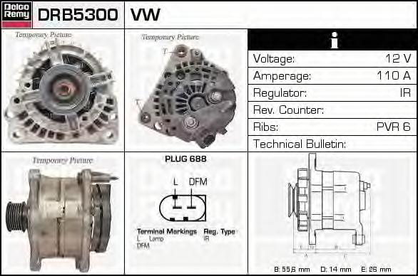 GENERATOR / ALTERNATOR DELCO REMY DRB5300 pentru VW POLO (6R_) 1.4 BiFuel |