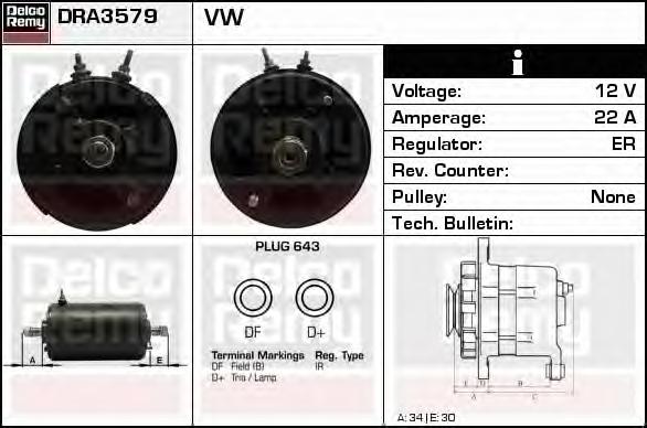 GENERATOR / ALTERNATOR DELCO REMY DRA3579 pentru VW KAEFER 1302 1.2 (11) |