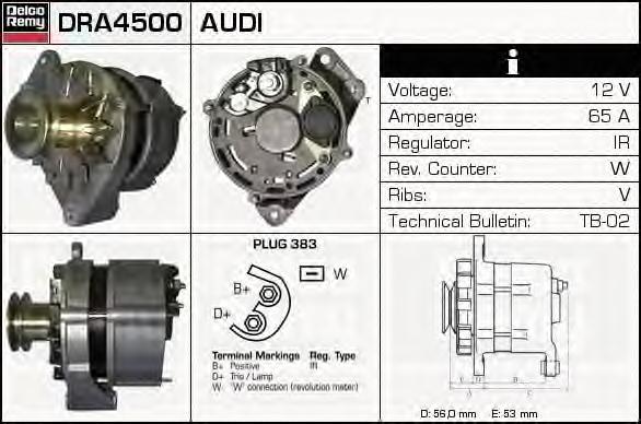 GENERATOR / ALTERNATOR DELCO REMY DRA4500 pentru VW GOLF II (19E, 1G1) 1.6 |