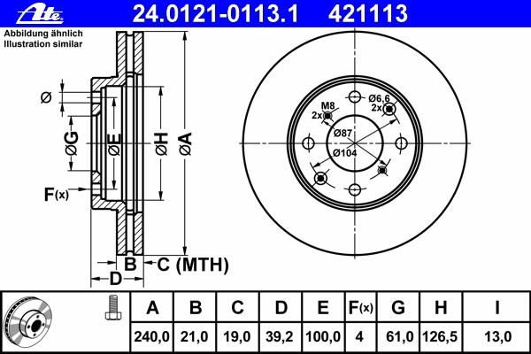 DISC FRANA ATE 24.0121-0113.1 pentru HONDA JAZZ II (GD) 1.2 |