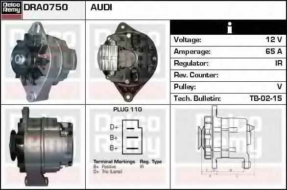 GENERATOR / ALTERNATOR DELCO REMY DRA0750 pentru VW POLO (86C, 80) 1.3 |