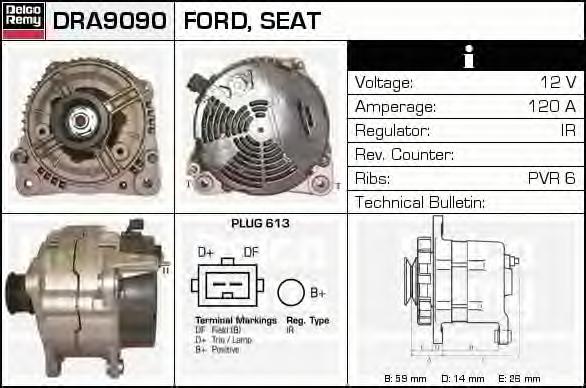 GENERATOR / ALTERNATOR DELCO REMY DRA9090 pentru VW PASSAT (3A2, 35I) 1.9 TDI |