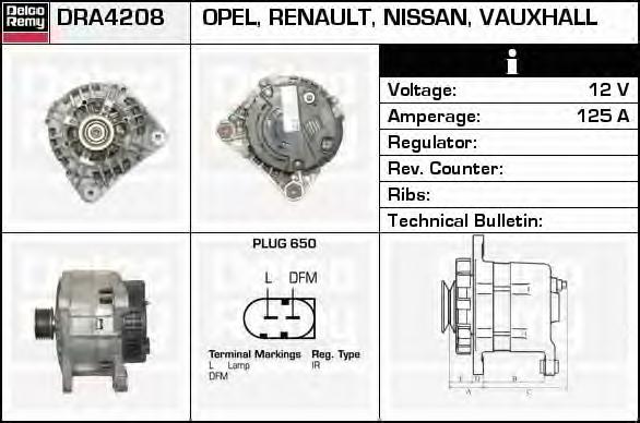 GENERATOR / ALTERNATOR DELCO REMY DRA4208 pentru RENAULT LAGUNA II Grandtour (KG0/1_) 2.0 16V (KG00, KG0K, KG0W) |