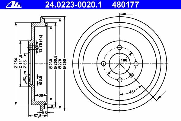 TAMBUR FRANA ATE 24.0223-0020.1 pentru VW CADDY II combi (9K9B) 1.4 16V |