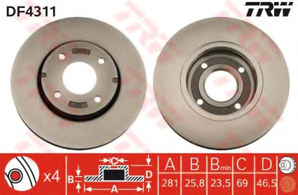 DISC FRANA TRW DF4311 pentru SMART FORFOUR (454) 1.5 BRABUS (454.034) |