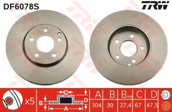 DISC FRANA TRW DF6078S pentru MERCEDES-BENZ E-CLASS T-Model (S211) E 350 T 4-matic (211.287) |