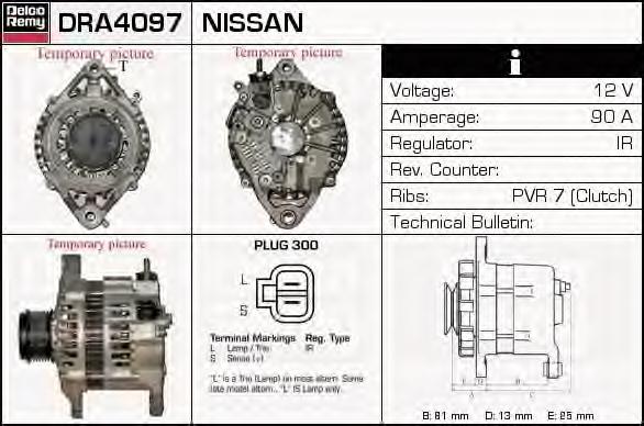GENERATOR / ALTERNATOR DELCO REMY DRA4097 pentru NISSAN PATROL GR II Wagon (Y61) 3.0 DTi |