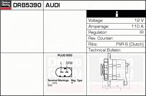 GENERATOR / ALTERNATOR DELCO REMY DRB5390 pentru SKODA OCTAVIA Combi (1Z5) 2.0 TDI |