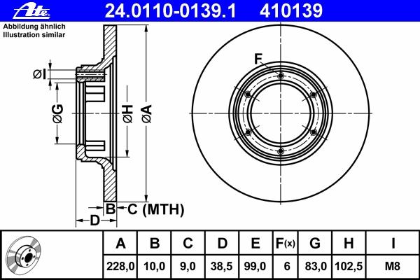 DISC FRANA ATE 24.0110-0139.1 pentru RENAULT 12 1.3 TS (1177, 1337) |