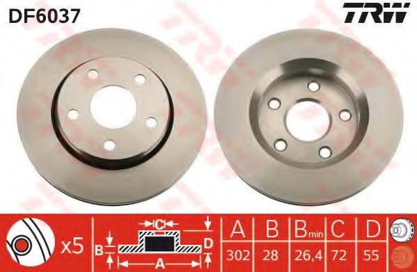 DISC FRANA TRW DF6037 pentru JEEP WRANGLER II (TJ) 3.8 Rubicon tractiune pe spate |