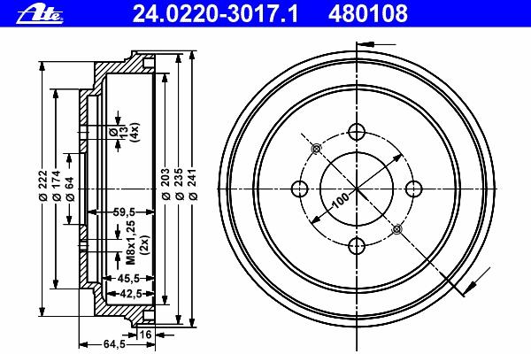 TAMBUR FRANA ATE 24.0220-3017.1 pentru MITSUBISHI MIRAGE hatchback 1.6 |