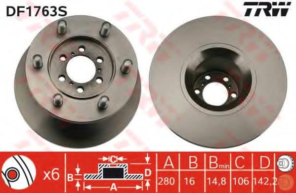 DISC FRANA TRW DF1763S pentru IVECO DAILY II platou / sasiu 49-10 (13050211, 13050231, 13050304, 13050311, 13050331...) |