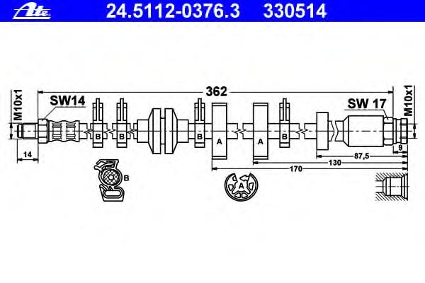 FURTUN FRANA ATE 24.5112-0376.3 pentru FIAT PUNTO Cabriolet (176C) 60 1.2 |