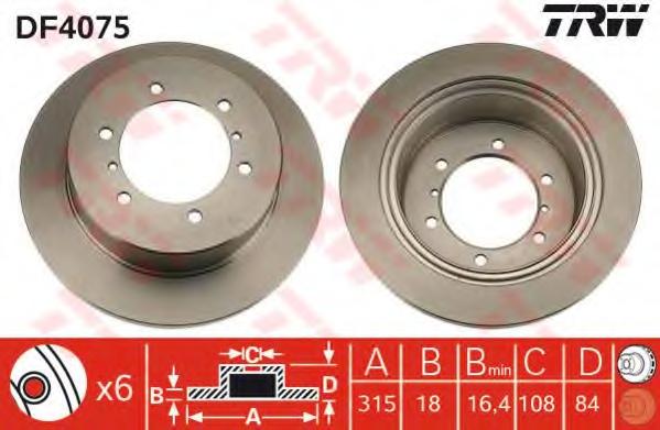 DISC FRANA TRW DF4075 pentru MITSUBISHI PAJERO II Canvas Top (V2_W, V4_W) 3.0 V6 24V (V23W, V23C) |