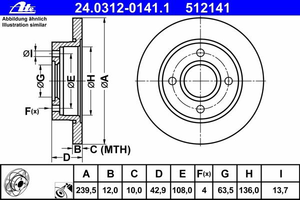 DISC FRANA ATE 24.0312-0141.1 pentru FORD FIESTA IV (JA_, JB_) 1.3 i |