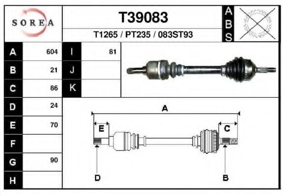 PLANETARA EAI T39083 pentru PEUGEOT 206 hatchback (2A/C) 1.9 D |